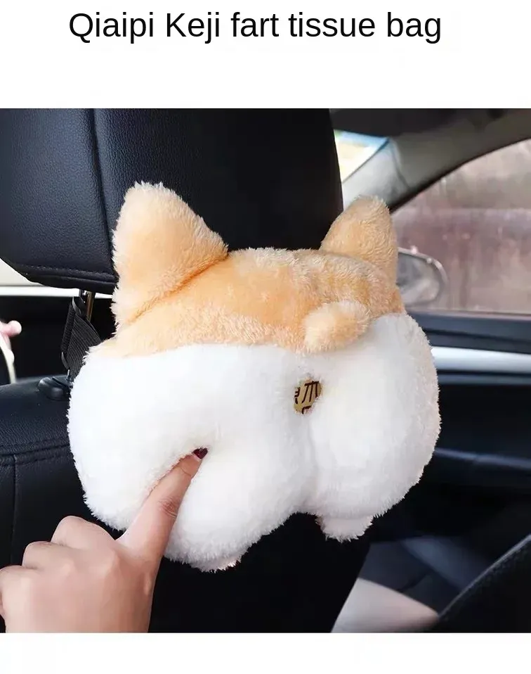 Tissue Box Cover Soft Adorable Corgi Butt Shaped Creative Storage Bag Hanging Pouch Tissue Box Wrapper For Car Home
