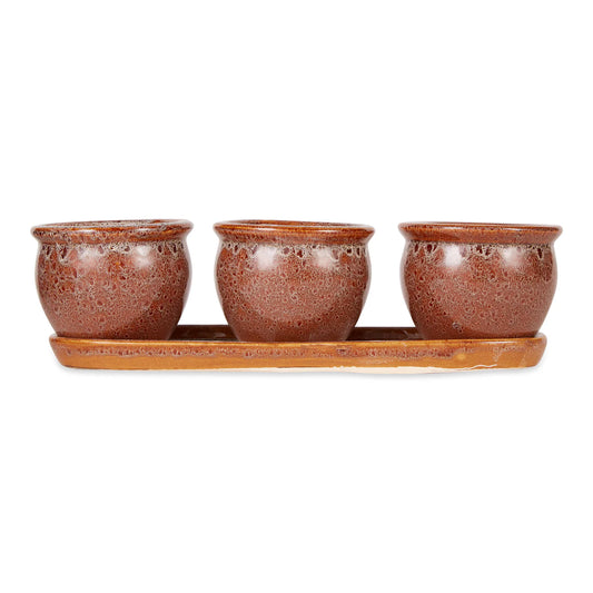 BROWN ROUND CERAMIC SMALL PLANTER SET OF 3