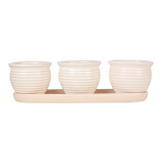 CREAM ROUND CERAMIC SMALL PLANTER SET OF 3