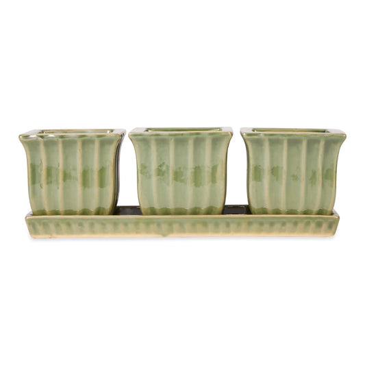 GREEN SQUARE CERAMIC SMALL PLANTER SET OF 3