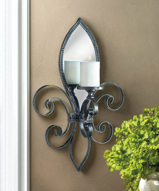 FLEUR-DE-LIS MIRRORED WALL SCONCE
