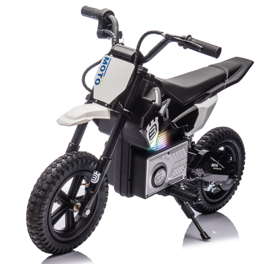 24V Kids Ride On Electric Toy Motocross Motorcycle,200W High Speed Hub Motor,Rear wheel shock absorber,Adjustable speed,LED breath lamp,Bluetooth,Music,Horn,Speeds 3.11-9.32MPH For Kids Aged 5-15.
