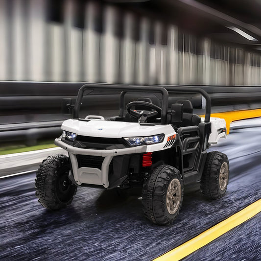 12V Kids Ride On Electric Car W/Parents Control,Dual drive, Four-wheel Suspension,With music,Bluetooth,MP3,USB,with headlights, steering wheel quick release,Slow start for Kids Aged 2-4.