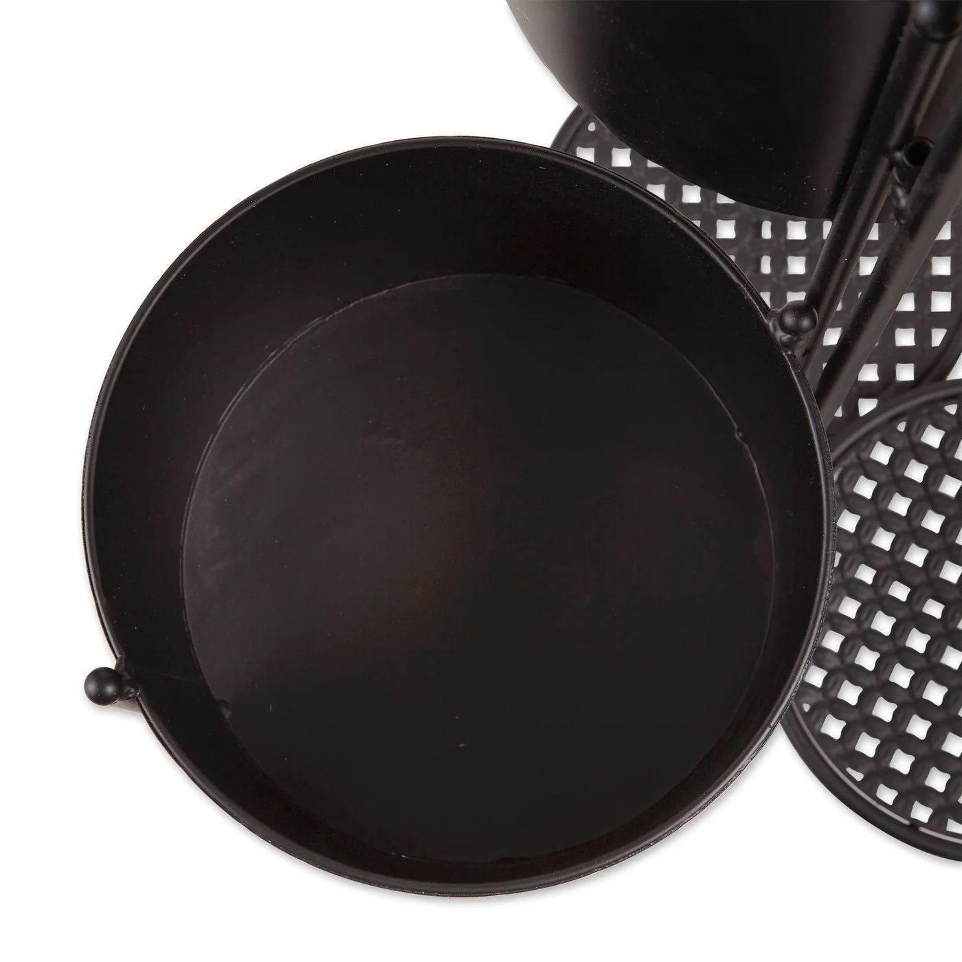 • Showcase your plants with this contemporary matte black finish 3-tier plant stand. The graceful stair step arrangement can display 3 large plants in a minimum amount of space. Additionally, 3 smaller plants can be placed on the bottom metal mesh shelves.