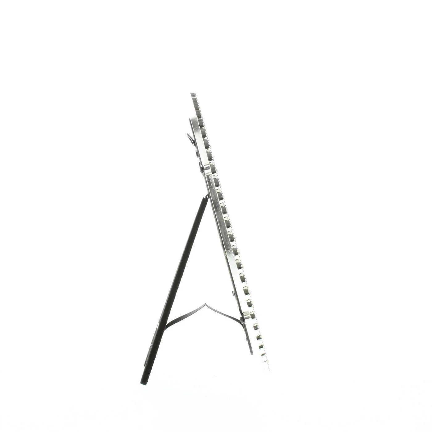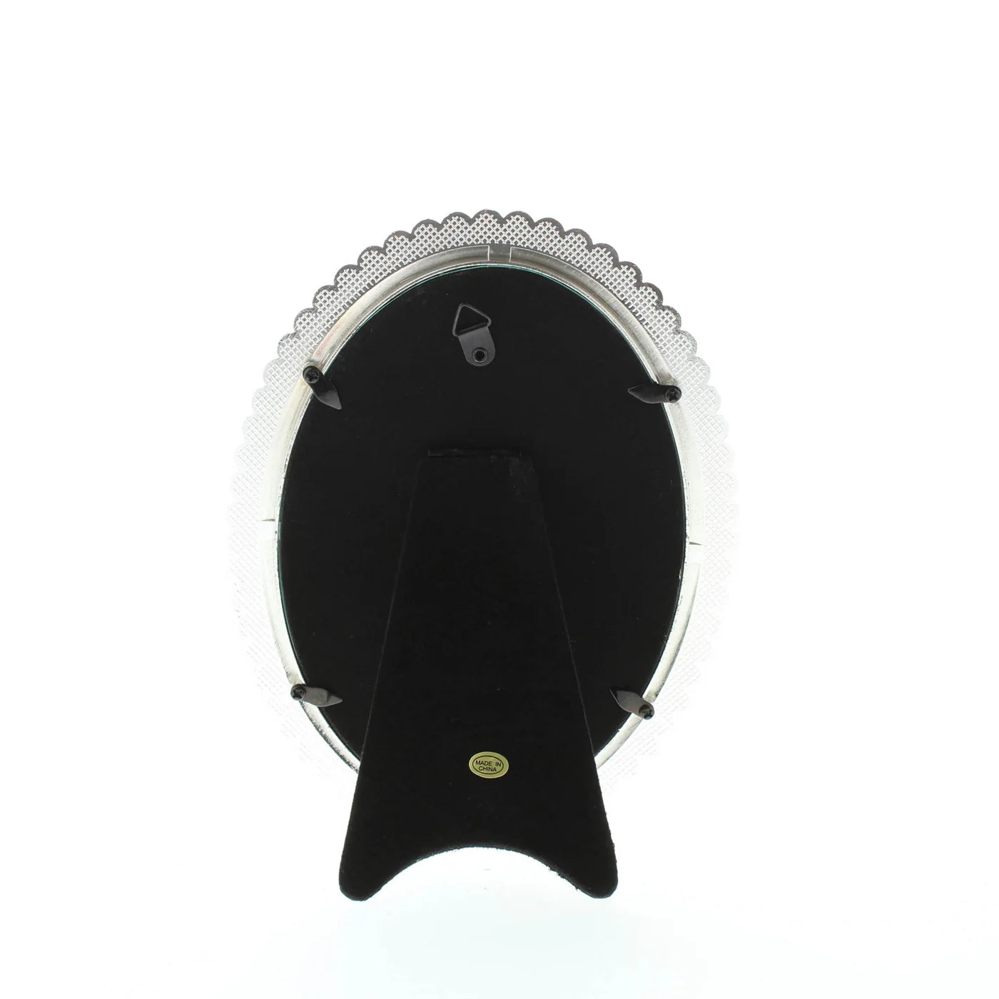 - This beautiful photo frame is a dazzling showcase for your favorite memory. It features a row of sparkling rhinestones around the oval 5 inch by 7 inch frame, and it has an easel stand for tabletop display.
