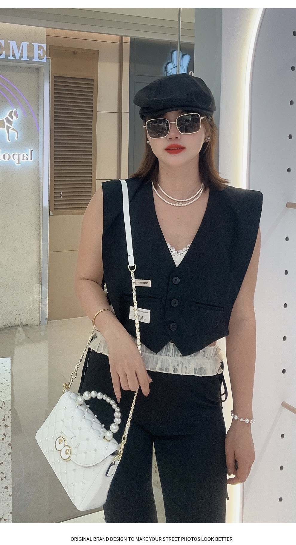 Solid color fashion embroidered pearl handbag zipper qualitative mini chain diagonal cross bag PU flip cover