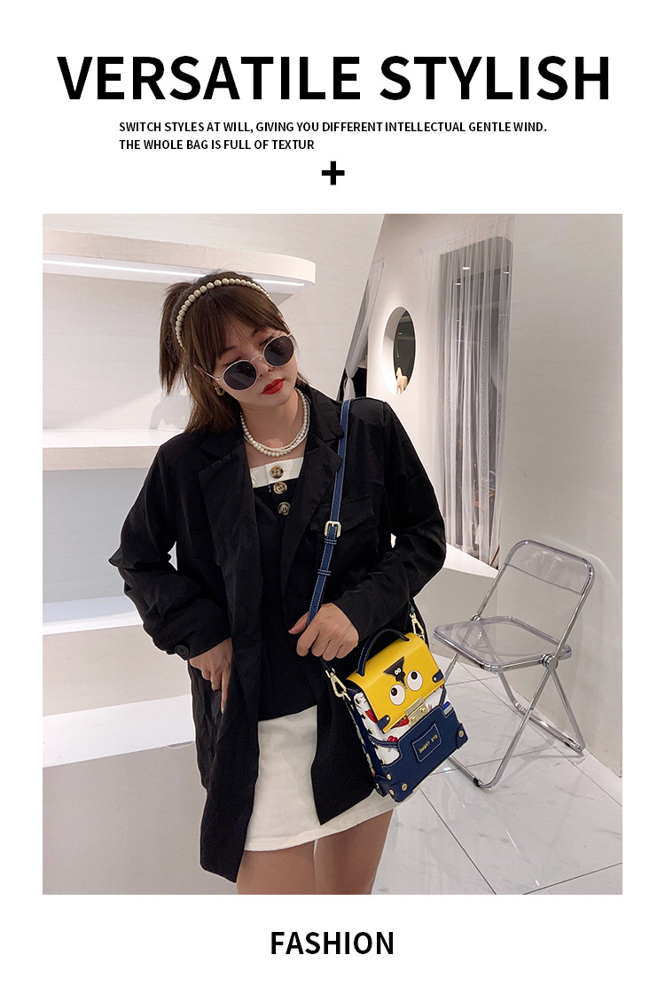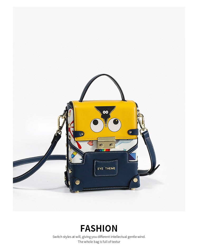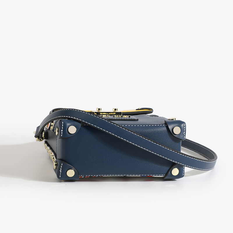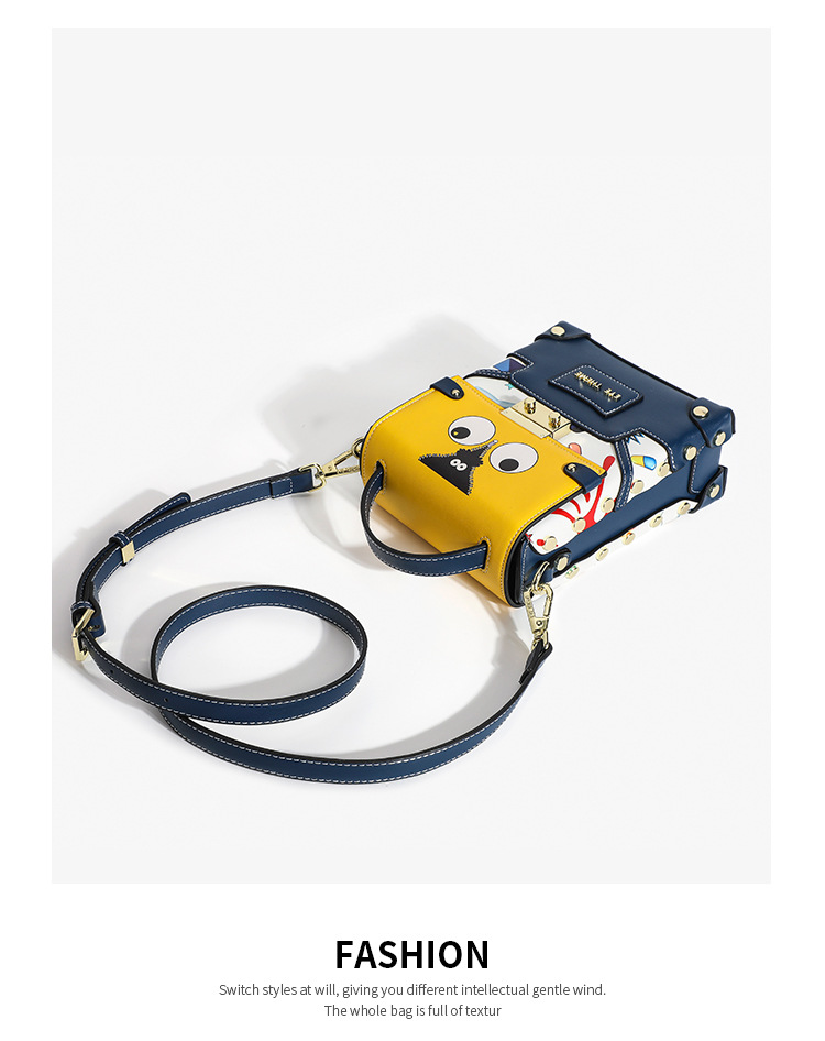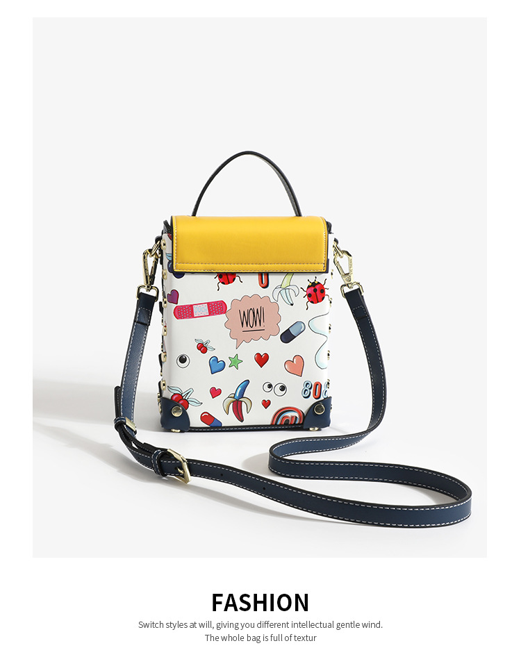 Spring and summer personalized small square box bag with contrasting color printing, practical designer's handheld diagonal cross phone bag