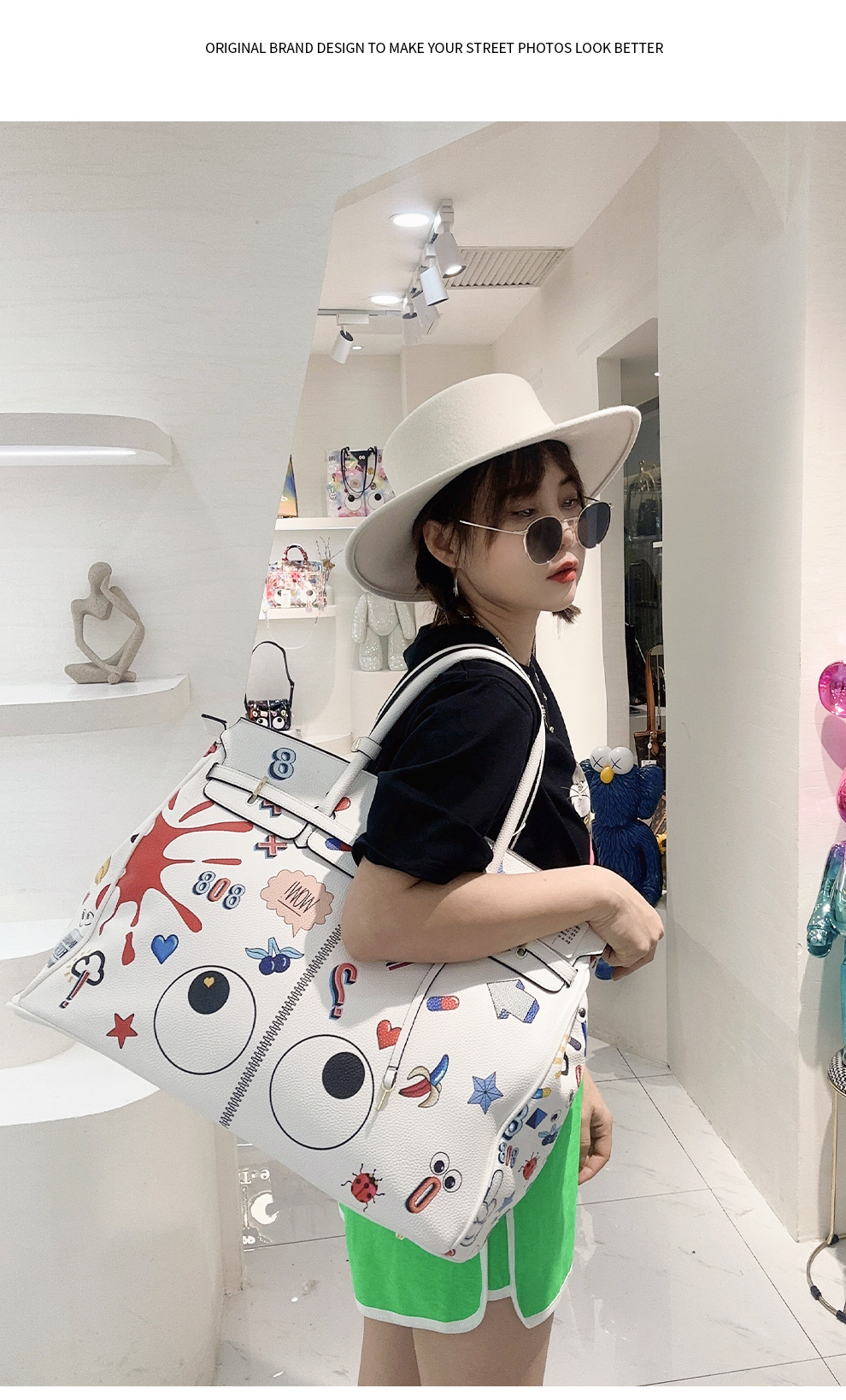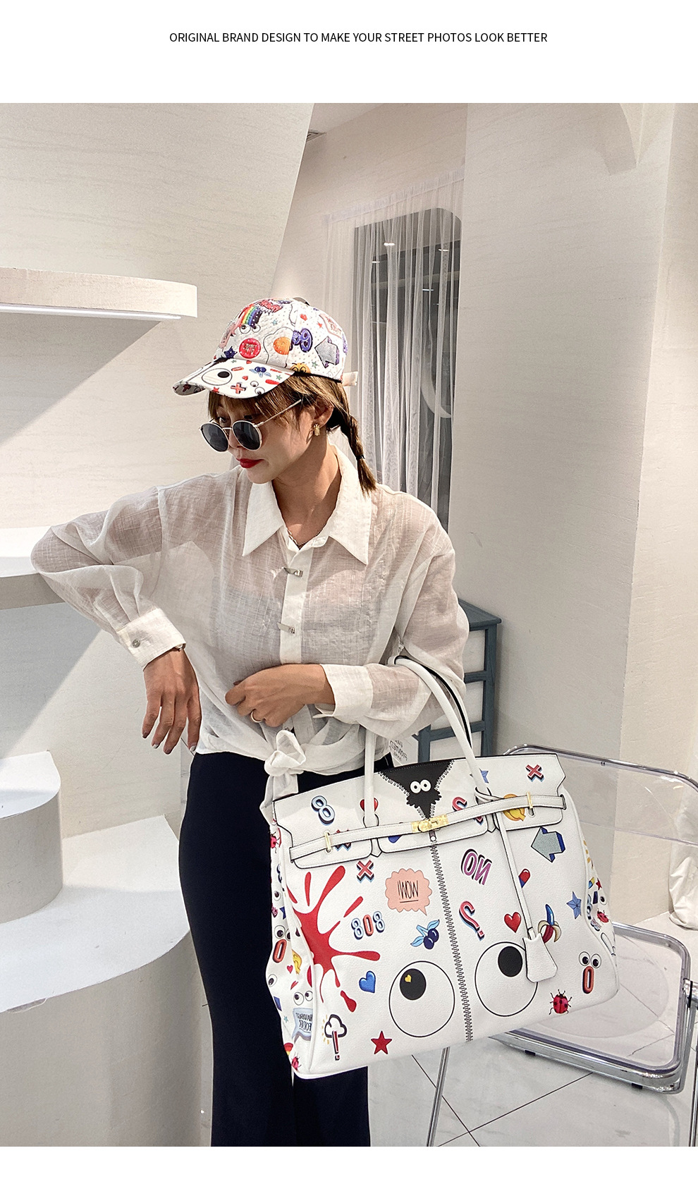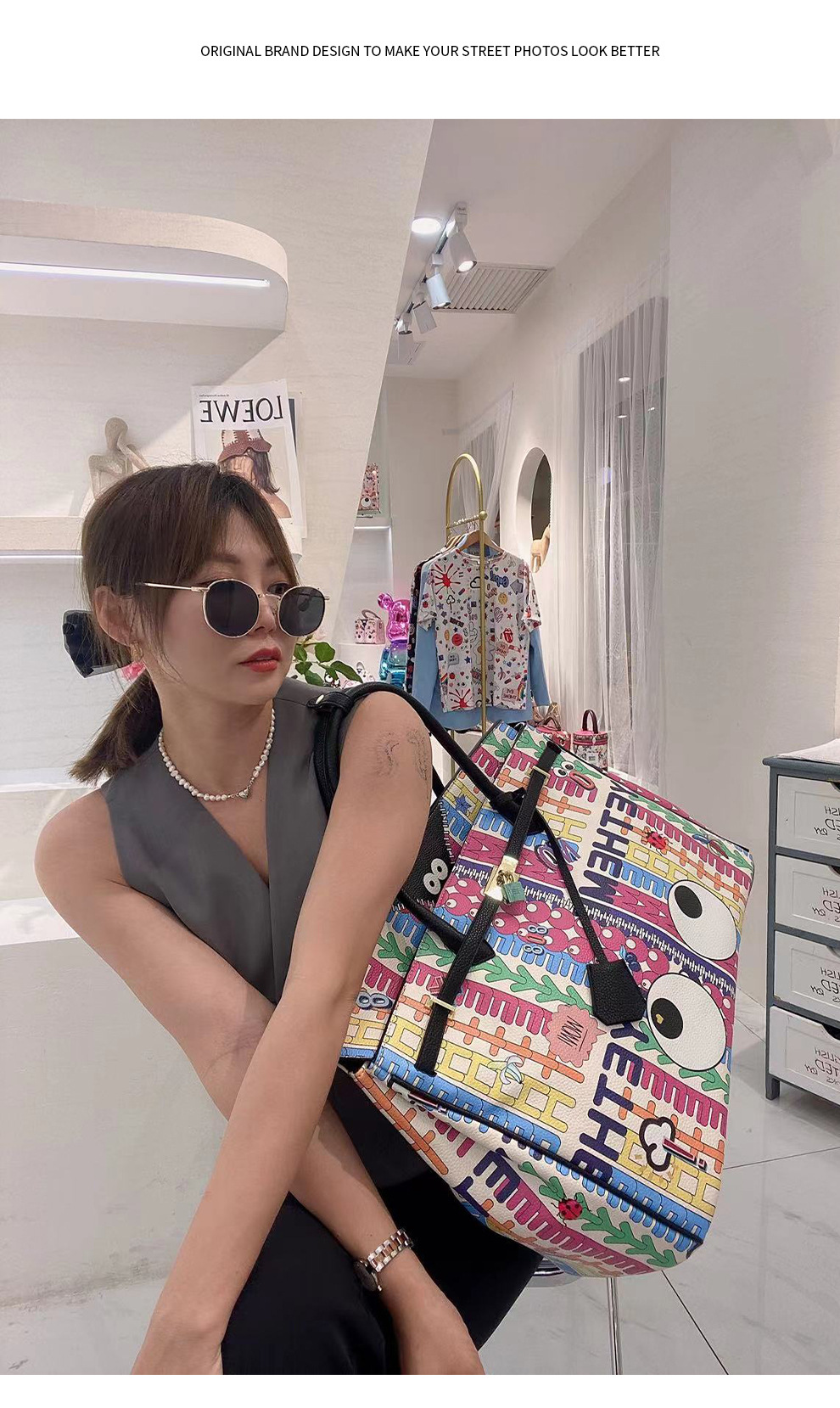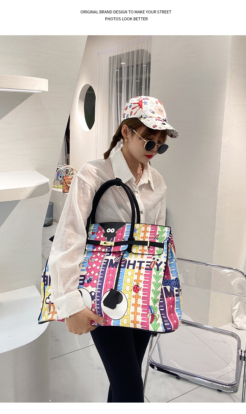Super large capacity PU printed lychee pattern contrasting color hand-held lock bag, travel storage fitness bag, trendy