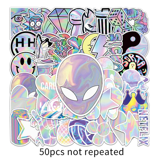 50 holographic laser graffiti personalized cross-border colorful trend creative luggage, mobile phones, water cups, car stickers