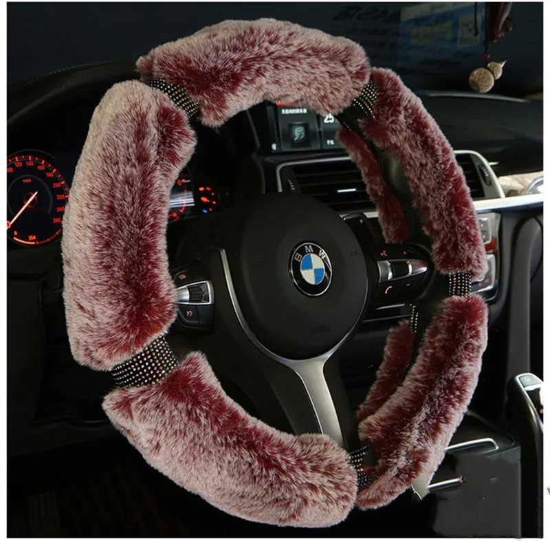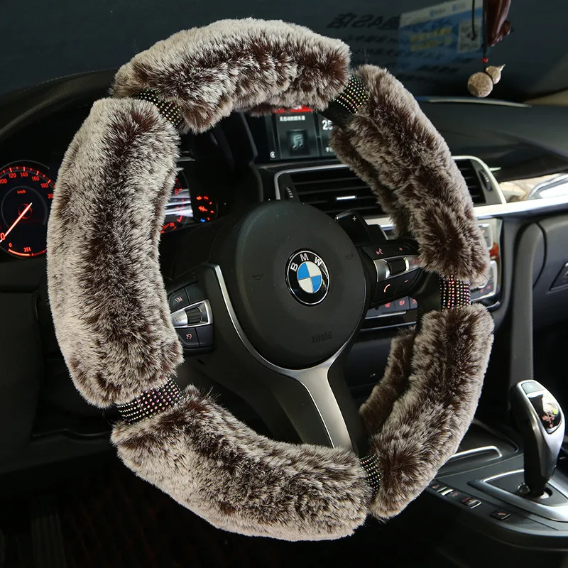 Car Steering Wheel Cover Winter Plush Steering Wheel Cover Korea Diamond Fashion Cute Handle Cover Car Accessories